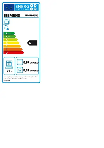 - Energieeffizienzklasse (gem. EU Nr. 65/2014): A (auf einer Energieeffizienzklassen-Skala von A+++ bis D) Energieverbrauch pro Zyklus im konventionellen Modus: 0.97 kWh Energieverbrauch pro Zyklus im Umluft-Modus: 0.81 kWh Zahl der Garräume: 1 Wärmequelle: elektrisch Innenraumvolumen: 71 l