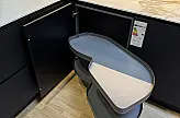 Als funktionales und zugleich gestalterisches Highlight dient der integrierte Tisch als Sitzgelegenheit, der perfekt an die Küche angedockt ist. Durch die warmen Holzakzente fügt er sich harmonisch in das Gesamtkonzept ein und schafft einen kommunikativen Mittelpunkt – ideal für den schnellen Kaffee, kleine Mahlzeiten oder als zusätzlicher Arbeitsplatz.