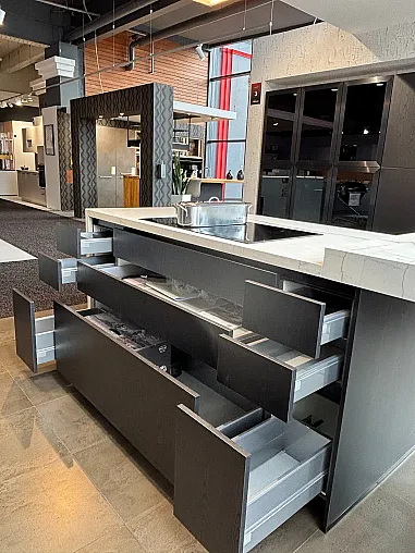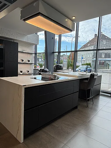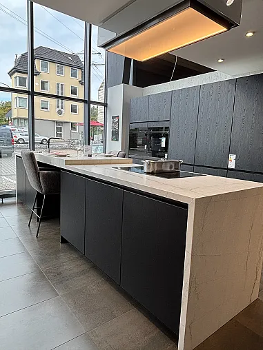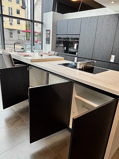 Nobilia Structura Elegante Küche mit Insel, luxuriöse Keramik Arbeitsplatte